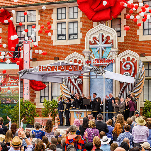 Auckland celebrates grand opening of new National Church of Scientology for New Zealand at landmark site overlooking the city.