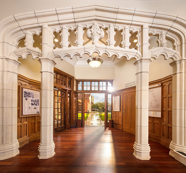 From the red brick and white Oamaru stone fabric used across the façade, to the restoration of delicately finished oak in the entrance hall and library and preservation of rimu timber panelling and jarrah wood flooring, she noted, the work has set the facility apart as a work of art itself.