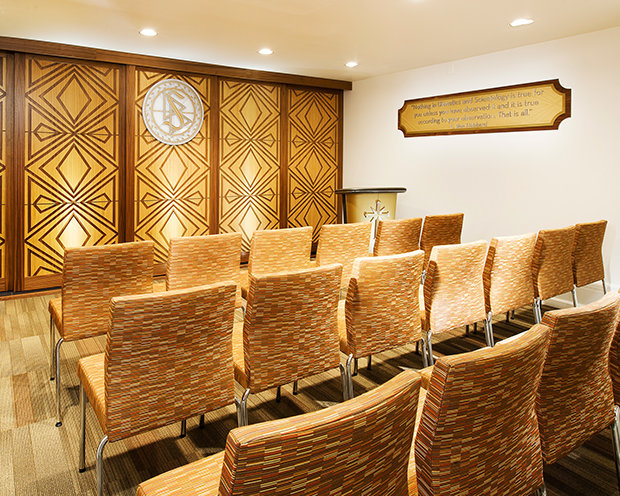 The Church invites members of all faiths to Sunday Services held in its Chapel. In addition to congregational gatherings, the Chapel also hosts a wide range of community events—from seminars and workshops to banquets and receptions.