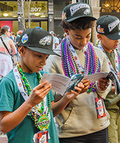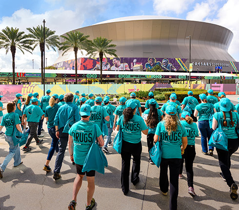 SCORING BIG AT THE BIG GAME The biggest one-day event of the year was the annual distribution drive at the Super Bowl in New Orleans. More than 120 Drug-Free World volunteers rolled through the French Quarter, ultimately reaching fans with 360,000 Truth About Drugs booklets.