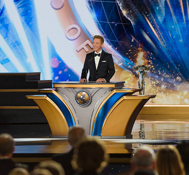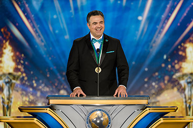Capping an inspiring presentation on the humanitarian campaigns, Mr. Miscavige reveals new broadcast programming on Scientology Network—igniting a sea of waving flags and cheers across the Grand Marquee.