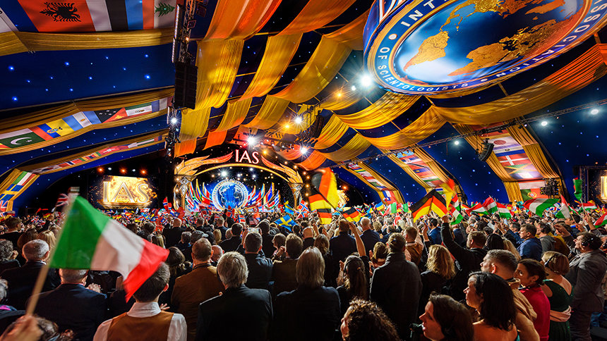 “Welcome to the night we summon the spirit of the IAS—a spirit born of perfect unity and pervading the very air we breathe,” began Mr. David Miscavige, ecclesiastical leader of the Scientology religion. “Tonight, that spirit of the IAS is ever-present, ever-embracive and alive forevermore.”